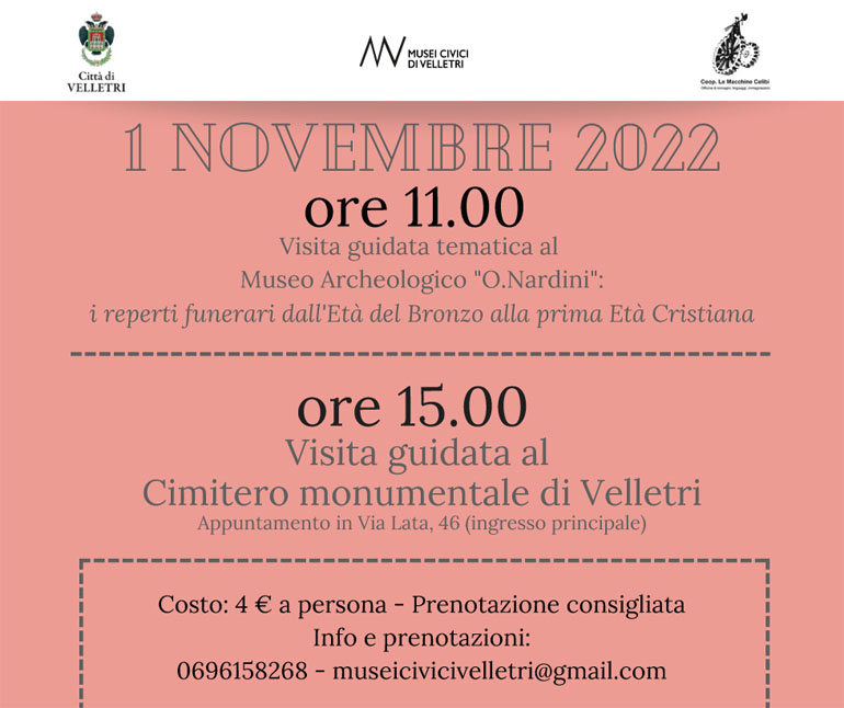 Velletri. I Musei Civici il 1° Novembre hanno organizzato una visita guidata tematica al Museo Archeologico ”O.Nardini”, e un percorso storico-artistico al Cimitero Monumentale