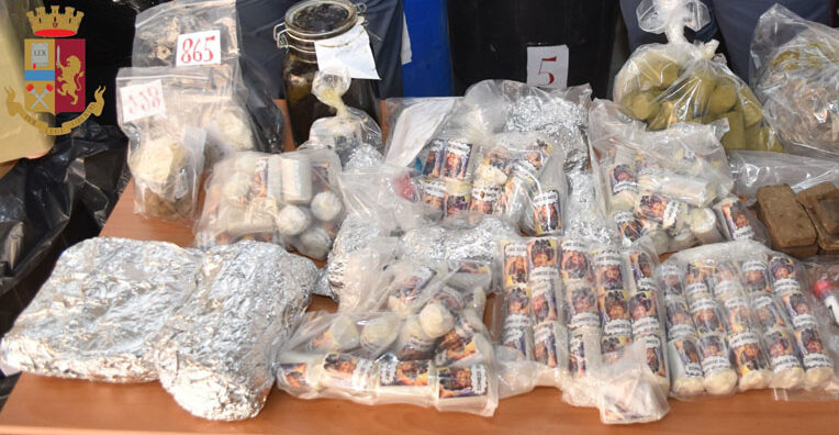 Durante la perquisizione, sono stati rinvenuti oltre 730 kg. di stupefacente costituto da: sostanza vegetale polverosa, sostanza solida di colore marrone, panetti di sostanza solida marrone, estratto vegetale oleoso e frammenti vegetali essiccati.