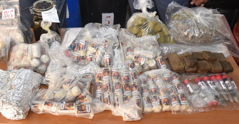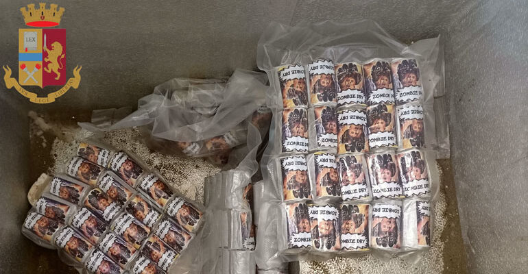 Le successive analisi, effettuate al momento solo su una parte di sostanza rinvenuta, hanno evidenziato che, oltre a cannabinoidi, 22 involucri – dei 124 cilindri complessivamente sequestrati – risultavano contenere ben 65.324 dosi medie singole di hashish.