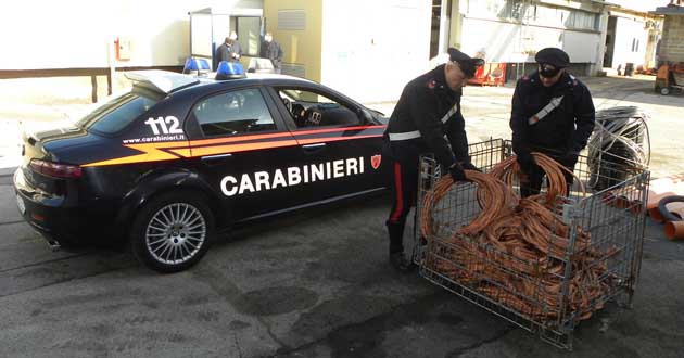 A seguito dei successivi accertamenti i Carabinieri hanno appurato che il rame era stato rubato da un impianto fotovoltaico situato sul tetto di uno stabilimento, di via di Nettuno, a Velletri.