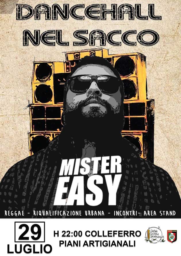 Venerdì 29 Luglio Mr Easy porterà la sua musica ai piani artigianali di Colleferro, all’interno del parco fluviale