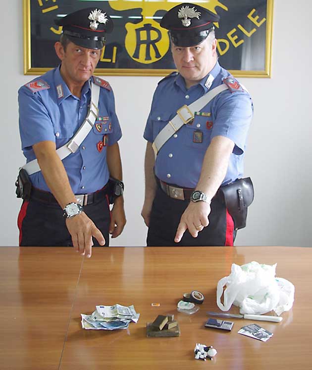 Il giovane, nel corso della perquisizione domiciliare operata con l’ausilio di unità cinofila, veniva trovato in possesso di grammi 9 di stupefacente del tipo “cocaina” già suddivisi in singole dosi e grammi 134 di “hashish” suddivisi in quattro involucri, nonché di un bilancino di precisione, materiale vario atto al confezionamento e la somma in contante di 105 euroritenuta provento dell’attività illecita. Il tutto veniva sottoposto a sequestro.