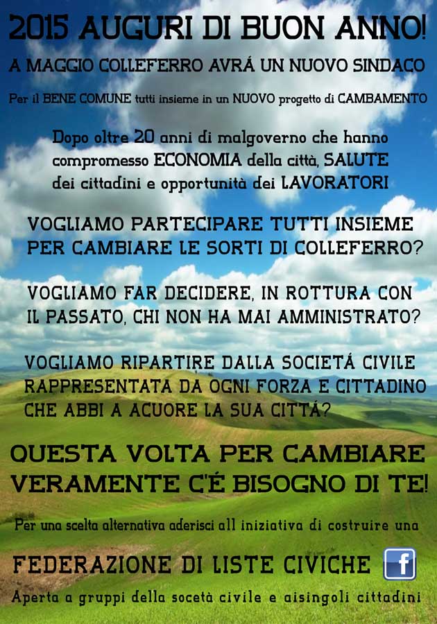 Cerca su facebook Federazione liste civiche Colleferro •> e scrivi a federazioneliste@libero.it».